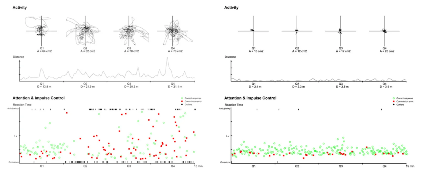 The QbTest ADHD assessment provides a visual report comparing a patient’s activity, attention, and impulsivity scores to others of similar age and gender. Results include charts and percentiles to help clinicians in Oregon and Washington objectively interpret symptoms and guide diagnosis or treatment decisions. Click here to see a Sample of the results.